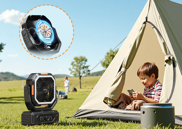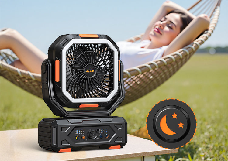 Stay Cool Anywhere – The OGERY F11 High-Velocity Camping Fan with 20W Fast Charging, Long-last Battery, and Whisper-Quiet Operation.