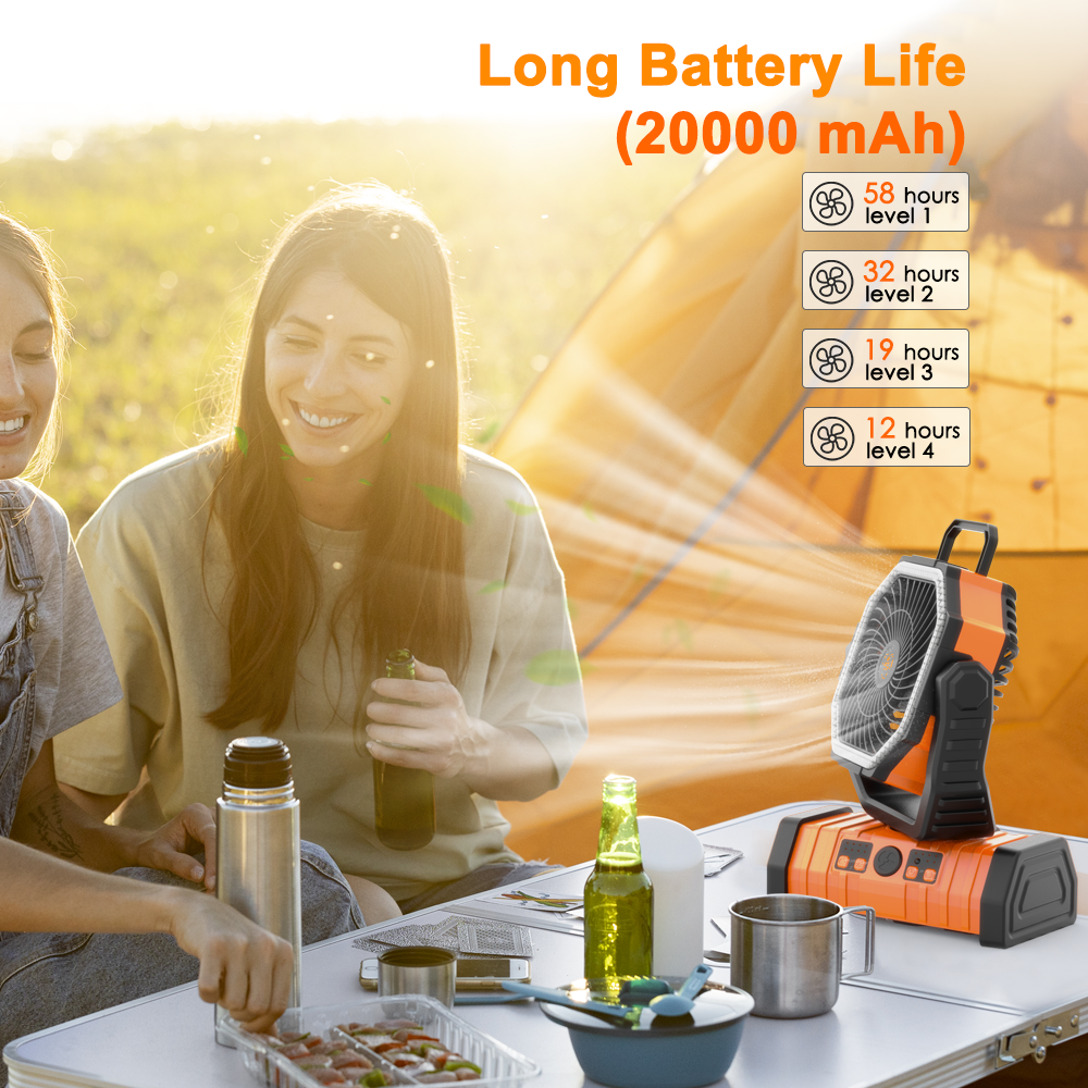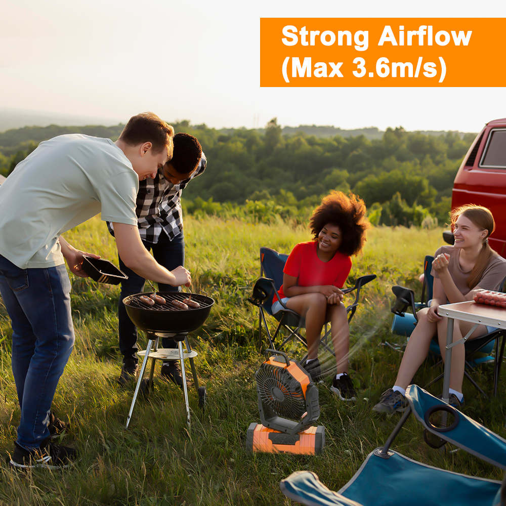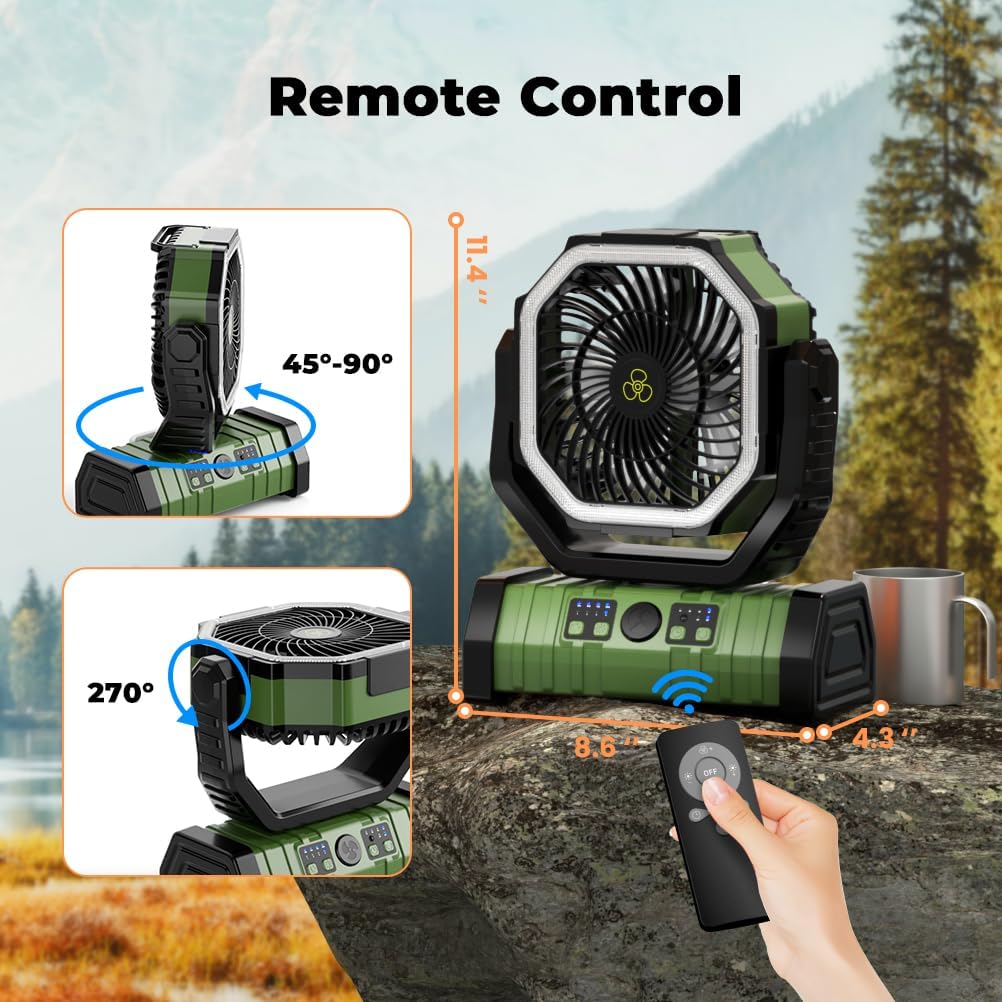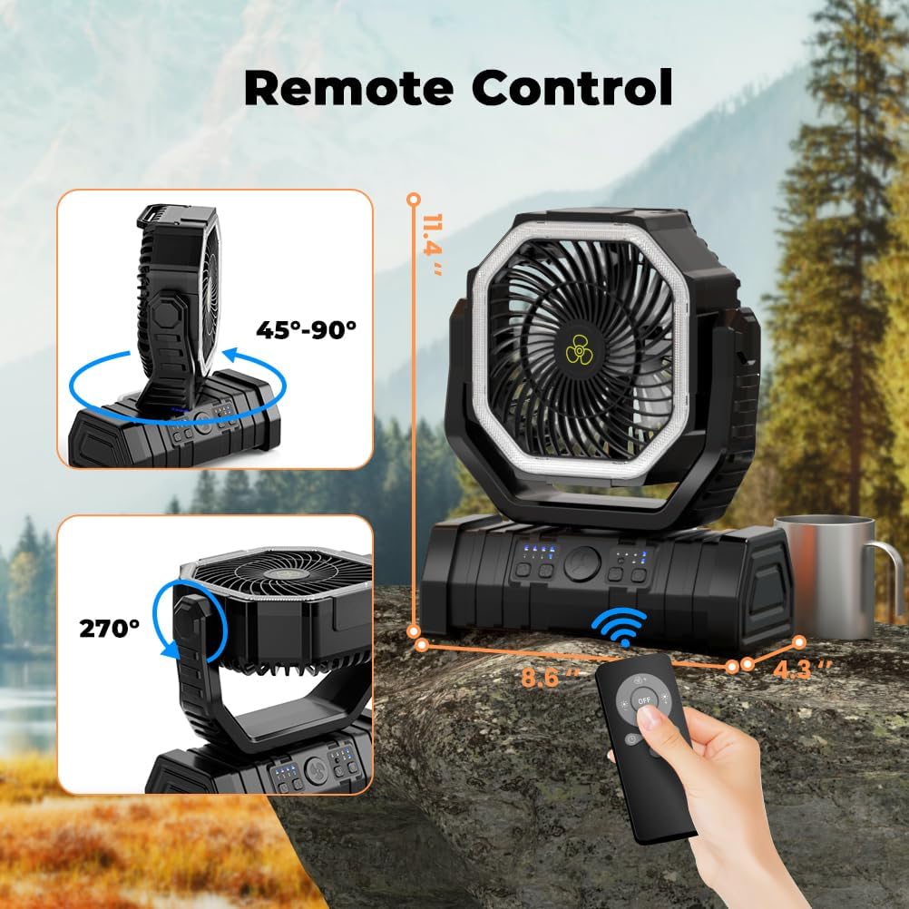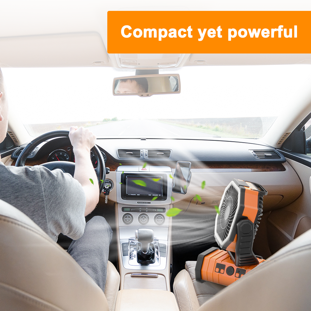 Combining a powerful fan, ring ambient lighting, and a mobile charger, the F6 is your compact solution to stay cool, illuminated, and fully connected—whether camping under the stars or relaxing in your backyard. Designed for adventure, built for convenience.