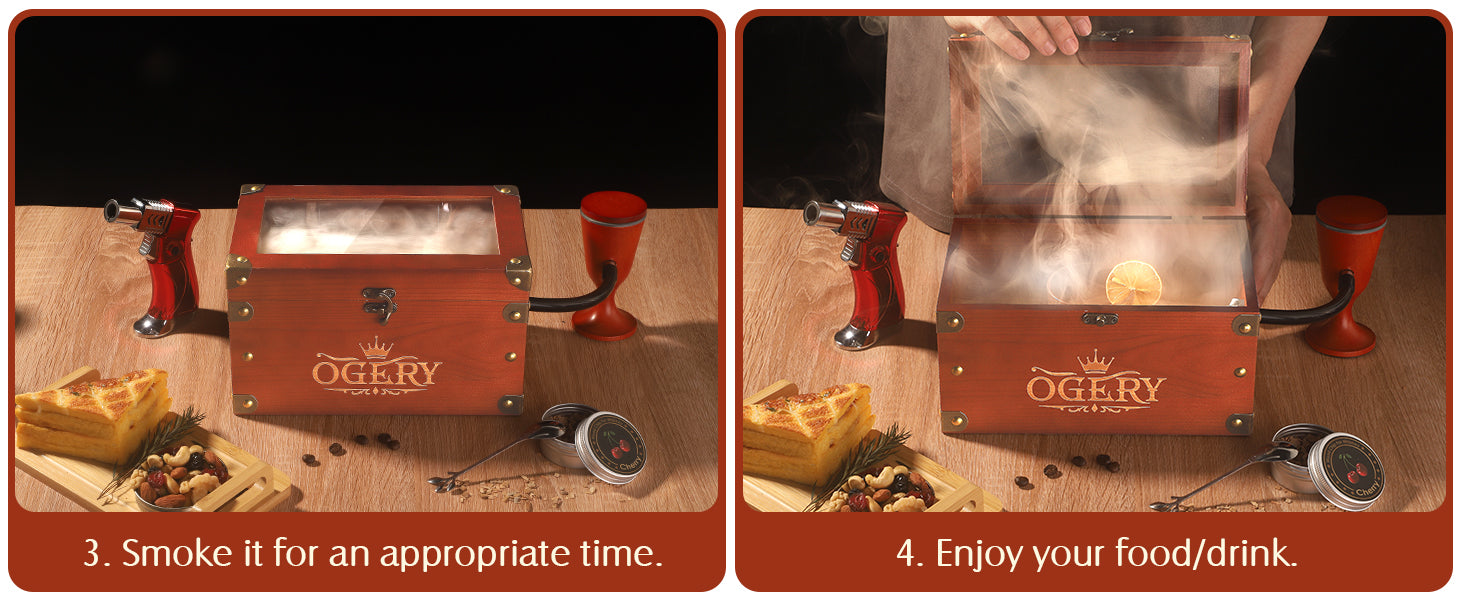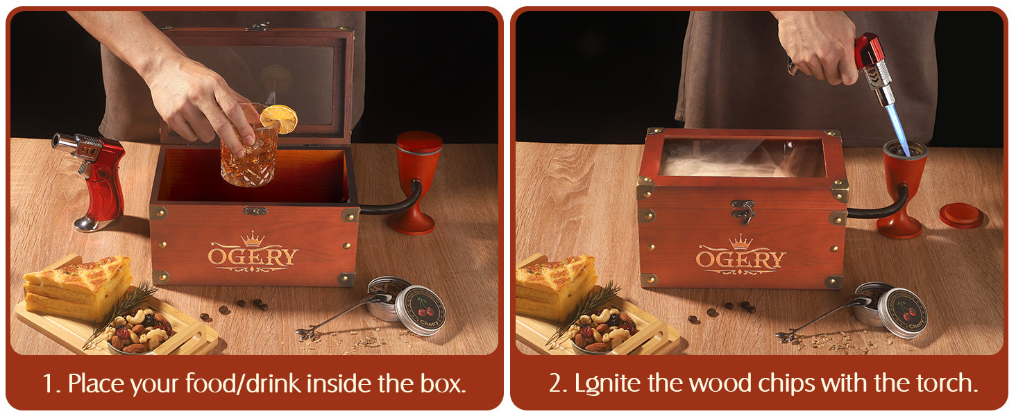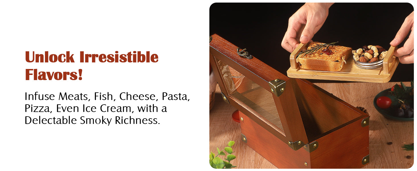 - 【Multipurpose Cocktail Smoker Box】 -- Experience the art of flavor infusion with our cocktail smoker box, as it effortlessly enhances the taste of your favorite whiskies or bourbons, turning ordinary cocktails into extraordinary creations, Not just limited to drinks, In just minutes, it adds a smoky richness to meats, fish, cheese, pasta, pizza, and even ice cream, delivering an irresistible taste experience.