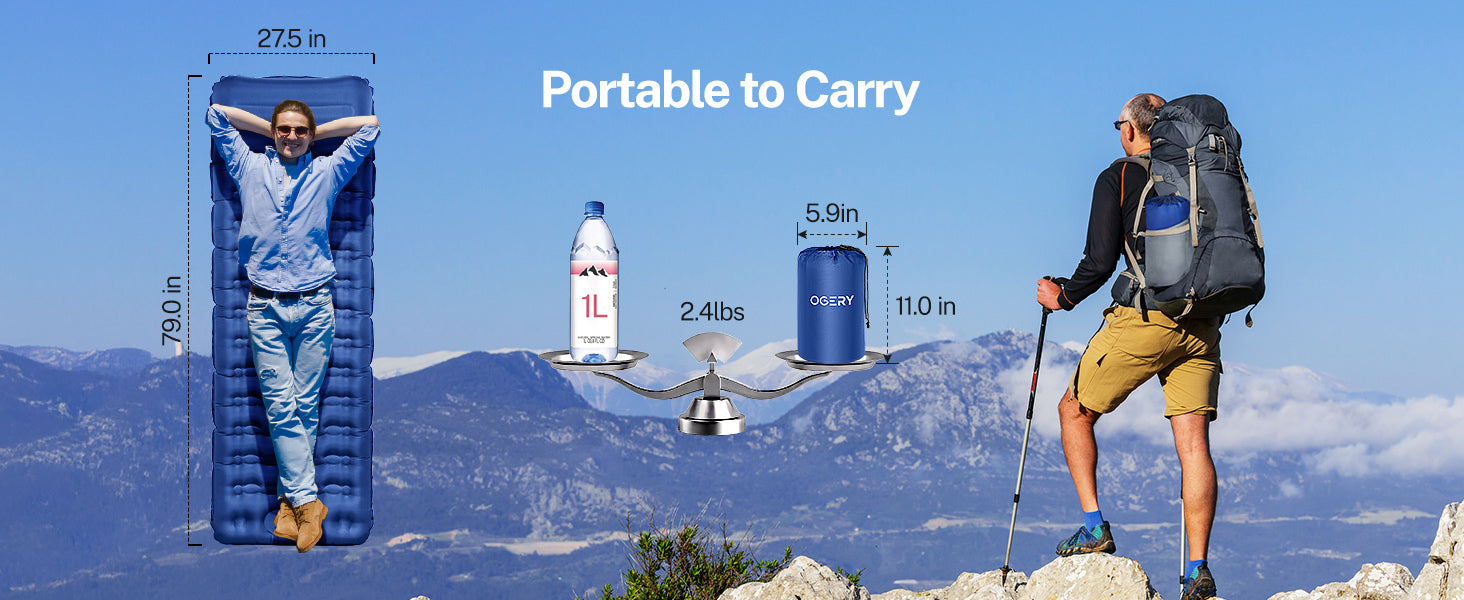 - Lightweight and Space-Saving --- Despite its double size, this camping mattress weighs only 2.4 lbs and packs down to a compact size of 5.9" x 5.9" x 11". It’s easy to carry in your travel bag, ensuring you get both comfort and portability.