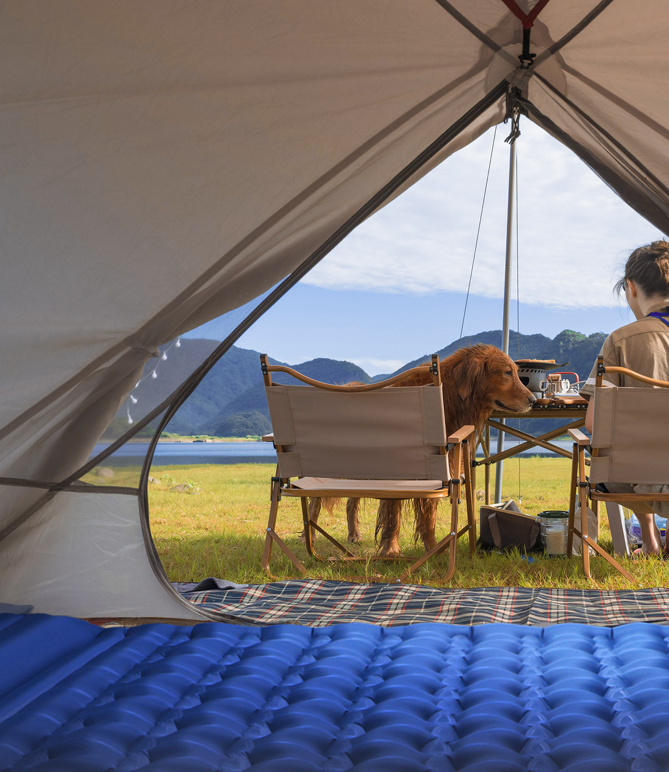 This 6" thick inflatable pad offers comfort for two campers. With a built-in foot pump, it inflates quickly and resists air leaks. Lightweight at 4.8 lbs and easy to pack, it’s made from durable, waterproof polyester—perfect for camping, hiking, or car trips.